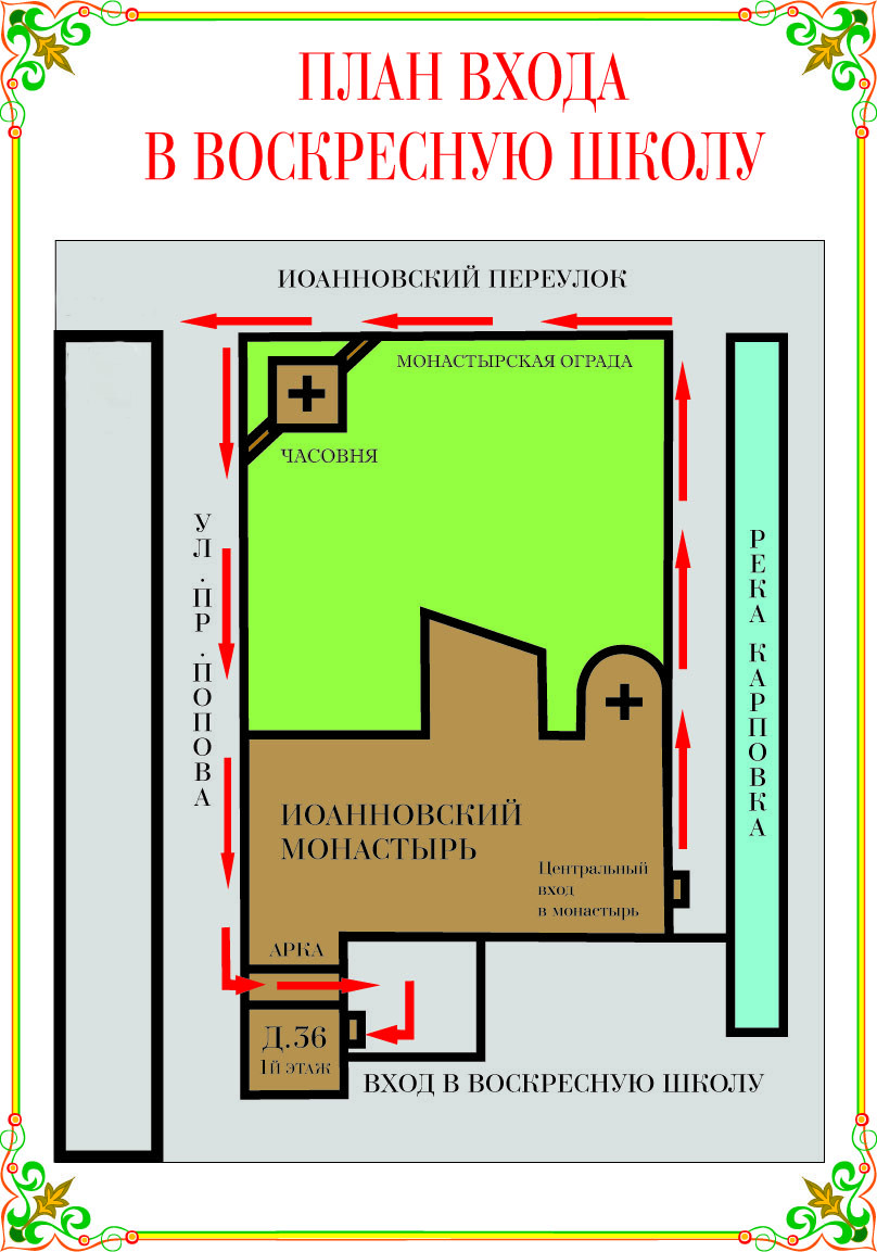 Занятия проводятся в здании монастыря. вход с ул. проф. Попова (розовое здание монастыря вход под арку).
